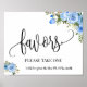 Póster Letrero de favores para boda recepción boho chic a