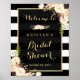 Póster de letrero de fiesta de despedida de soltera con flores y rayas en blanco marfil.