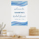 Este diseño elegante y refinado está pintado a mano en acuarela en tonos de azul claro, azul clásico y azul marino. El diseño abstracto se asemeja a las olas del océano, perfecto para una fiesta de despedida de soltera con tema de playa, océano o náutico. Agregue fácilmente el nombre de la novia y la fecha del evento a este hermoso letrero de fiesta de 24x36 pulgadas.