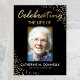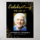 Letrero de bienvenida para funeral con un fondo negro elegante que se puede cambiar a cualquier color, una foto de su ser querido, un destello de purpurina dorada, su nombre y fechas.