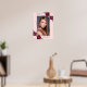 Elegante letrero de bienvenida de celebración de la vida/funeral con acuarela roja y rosa y foto floral con rosas rojas y rosadas y flores de bebé que decoran una foto dentro de un marco plateado. Artículos coincidentes disponibles.