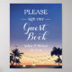 Letrero de Luces de Cuerdas de Playa de Verano | Por Favor Firme Nuestro Libro de Invitados de Boda Póster.