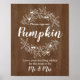 Simplemente agrega un marco para exhibir este letrero de "Por favor firme nuestra calabaza" y haz que tus invitados te dejen sus deseos de boda en una decoración de calabaza pintada que podrás usar durante años. Esta colección se inspiró en mi propia fiesta de compromiso que tuvo lugar antes del Día de Acción de Gracias. Quería algo un poco diferente a los populares temas de "Enamorarse" y decidí que "Agradecidos por nosotros" era perfecto. El diseño presenta un fondo con textura de madera con texto blanco. Las ramas dibujadas a mano con bellotas y bayas añaden un toque final para unir el tema. El texto, la fuente y los colores de la fuente son totalmente editables, lo que hace que sea fácil usar esta plantilla para tu evento especial.