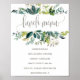 Este letrero de menú de almuerzo de follaje es perfecto para un evento rústico. El diseño presenta un marco boho de hojas verdes y botánicos de follaje verde.
