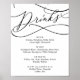 Este letrero de menú de bebidas con caligrafía romántica es perfecto para una boda sencilla. El diseño clásico moderno cuenta con giros elegantes y florituras caprichosas con tipografía elegante y manuscrita. Personalice el letrero con las bebidas disponibles en su recepción.