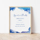 Letrero de menú de bebidas de boda impreso personalizado con un borde abstracto de acuarela azul para coordinar con nuestra colección Sapphire Tide. Personalízalo con los detalles de tu menú de bebidas de firma personalizado. Utilice las herramientas de diseño para editar las fuentes y los colores o subir tus propias fotos para crear un letrero de bienvenida de boda único.