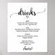 Este letrero de menú de bebidas de caligrafía negra simple es perfecto para una boda rústica o moderna. El diseño minimalista presenta una fuente de letra de pincel elegante y un corazón femenino encantador. Personalice el letrero con las bebidas disponibles en su recepción.