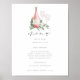 Un encantador letrero de menú botánico muestra sus selecciones de comida coronadas por una botella de vino rosado con las iniciales de la pareja inscritas, y dos copas de vino sobre una cama de hojas de eucalipto y follaje de acuarela verde. Diseñado para coincidir con nuestra colección de invitaciones Cheers to Love.