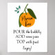 Letrero de Bar Mimosa Naranja con una ilustración de naranja con las palabras "Bar Mimosa" en un divertido tipo de letra de caligrafía.
