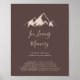 Este letrero de país montañoso claro en memoria es perfecto para una boda rústica o una ducha de novia. El diseño presenta una idílica montaña beige de acuarela.