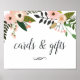 Diseñado para combinar con nuestra colección de fiesta de boda y de baby shower Peach Meadow, este letrero floral elegante permite a los invitados saber dónde dejar sus tarjetas y regalos. Personalice con una línea de texto personalizado en letra de caligrafía (mostrado con "Tarjetas y regalos"), enmarcado por flores de durazno y follaje botánico verde.