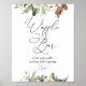 Letrero de barra de waffles con características de acuarela de ramas de abeto y piñas. Personalice con su propio texto.