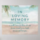 Escena de Playa Pintada Brisa Isleña, con olas del océano, playa de arena y palmeras, con un hermoso cielo azul turquesa. Con fuentes de letra de tipografía moderna. Una playa tropical de verano, o diseño de boda de destino - Señal de ceremonia o recepción de boda personalizada En memoria, señal conmemorativa de seres queridos perdidos!