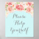 Letrero de por favor sírvase para barra o mesa de postres para baby shower, despedida de soltera o boda en azul pastel con flores vintage de acuarela en rosa claro. Perfecto para una baby shower, boda o despedida de soltera.
