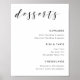 Letrero de cartel de menú de postres de boda diseñado a medida con diseño moderno en blanco y negro.