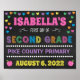 Póster Letrero de Primer Día de Segundo Grado en Pizarra