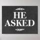 Póster Letrero de Propuesta de Boda He Asked