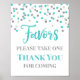 Letrero de recuerdos para baby shower, despedida de soltera, fiesta de cumpleaños o boda en patrón de confeti azul claro y plateado. Tenga en cuenta que el efecto brillo es solo efecto fotográfico.