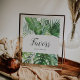 Este letrero de recuerdos de boda con palmas tropicales salvajes es perfecto para una boda en la playa o en un destino exótico. El diseño presenta una variedad exótica de hojas de palmera de plátano de acuarela verde, helechos, follaje, plantas botánicas y vegetación para un ambiente tropical de verano.