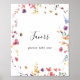 Este letrero clásico de recuerdos florales silvestres de colores es perfecto para una boda moderna o una ducha de novia. El diseño presenta flores silvestres amarillas, moradas y blancas con follaje en un fondo de acuarela rosa y verde.