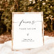 Este letrero de Favors presenta una elegancia minimalista moderna y hermosa para exhibir en su ducha, boda o evento especial. ¡Edite fácilmente la mayoría de las palabras para que coincidan con su evento! Los colores del texto y del arco son totalmente editables —> haga clic en el botón "Personalizar más" para editar.
