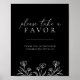 Cautiva a tus invitados de boda con el Simple Letrero de Favor de Boda Floral Moderno Negro. Este elegante letrero de boda presenta un delicado contorno floral contra un fondo clásico en blanco y negro. Su aspecto simple y sofisticado eleva sin esfuerzo cualquier estética de boda, desde rústica hasta moderna. Úsalo para exhibir los favores de boda, dirigir a los invitados o mejorar la decoración de tu recepción: esta pieza es el toque final perfecto. El Simple Letrero de Favor de Boda Floral Moderno Negro es una inversión atemporal que será apreciada mucho después de tu día especial. Su construcción de alta calidad garantiza que será un recuerdo que capture la elegancia y la belleza de tu boda. Impresiona a tus invitados y crea recuerdos duraderos con este impresionante y versátil letrero.