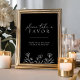 Póster Letrero de Regalo de Boda Floral Moderno Negro Sen