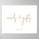 Póster Letrero de tarjetas y regalos con escritura en oro