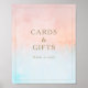 Este letrero de tarjetas y regalos de acuarela de puestas de sol de verano es perfecto para tu boda boho de playa tropical. Diseñado con acuarela minimalista, coral naranja-melocotón y azul polvoriento, acompañado de tipografía rústica simple dorada arenosa. Seguro que combina con las vibraciones de tu boda moderna bohemia costera en destino.