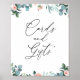 Letrero de Tarjetas y Regalos con flores rosadas en acuarela y follaje que combina con nuestra colección Time for Tea disponible en la tienda Adore Paper Co. Zazzle.
