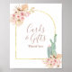 Letrero de tarjetas y regalos de hierba de pampas de flores rosadas de cactus boho