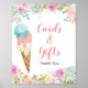 Letrero de tarjetas y regalos de helado pastel para baby shower y boda con brillo dorado