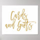Póster de Tarjetas y Regalos en dorado.