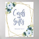 Póster Letrero de tarjetas y regalos florales dorados azu