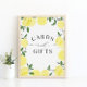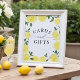 Letrero de tarjetas y regalos para despedida de soltera de limón amarillo: perfecto para una despedida de soltera con tema de cítricos de verano o tema Main Squeeze.