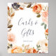 Esta señal de tarjetas y regalos de flores de tierra rústica es perfecta para una boda de otoño o una despedida de soltera. El elegante diseño de tonos terrosos presenta flores rústicas de acuarela en tonos de terracota, cobre, naranja quemada, melocotón, rosa sonrosado y blanco crema con estilo boho vintage. La línea de texto en la parte inferior de la señal se puede personalizar con la fecha, los nombres de la novia y el novio, o un mensaje corto como "Gracias". Esta señal se puede utilizar para una boda o cualquier evento o fiesta.
