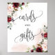 Letrero de tarjetas y regalos de ducha de novia o boda con tipografía rústica moderna, burdeos, rubor rosa, floral, oro, brillo, destellos, Contacta conmigo para artículos coincidentes o para personalización, Rosas Rubor ©