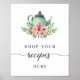 Este hermoso letrero de recetas para la ducha de novia presenta una tetera de acuarela y un ramo floral rosa. ¡Es el decorado perfecto para coordinar con el tema de tu fiesta de té!