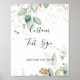 Este letrero de texto personalizado con caligrafía de eucalipto dorado es perfecto para una boda rústica o una ducha de novia. Este diseño artístico presenta follaje dorado y verde dibujado a mano con acuarela, inspirando belleza natural.