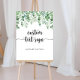 Este letrero de texto personalizado con caligrafía minimalista de eucalipto es perfecto para una boda rústica o una ducha de novia. El diseño presenta eucalipto verde pintado a mano con acuarela, inspirando belleza natural.