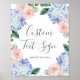 Esta elegante señal de texto personalizado de hydrangeas para tarjetas y regalos es perfecta para una boda de primavera o verano. El diseño floral clásico presenta hydrangeas de acuarela en suave azul en polvo acentuadas con flores de color rosa claro neutro y hojas verdes. ¡Personalice el texto para que diga lo que quiera! Esta señal se puede utilizar para tarjetas y regalos, libro de invitados, hashtag de boda, favores, barra de postres, ¡cualquier cosa! Se puede utilizar para una boda, fiesta de compromiso, cena de ensayo o cualquier evento. La línea de texto en la parte inferior de la señal se puede personalizar con la fecha, los nombres de la novia y el novio, o un mensaje corto como "Gracias". Si desea varias señales coordinadas, personalice y agregue al carrito una a la vez.