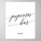Este letrero elegante de barra de palomitas de caligrafía negra es perfecto para una boda sencilla. El diseño neutral presenta un cartel minimalista decorado con tipografía romántica y caprichosa.