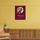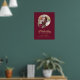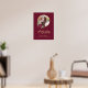 Elegante letrero de bienvenida funerario floral burgundy y dorado con un marco de foto dorado adornado con rosas rojas burgundy. Para solicitudes personalizadas, por favor envíenos un mensaje a través del chat de Zazzle.
