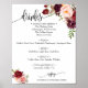 Póster Letrero menú de bebidas boda marsala floral boho c