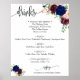 Póster Letrero menú de bebidas boda navy burgundy floral