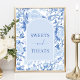 Póster Letrero Nupcial Chinoiserie Azul y Blanco Dulces y