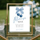 Agrega un toque final elegante a tu estación de bebidas con este letrero para barra de mimosas para despedida de soltera "Something Blue". Diseñado en una paleta de colores clásica azul y blanca, este letrero de mesa presenta un delicado motivo de lazo azul combinado con tipografía refinada, lo que lo convierte en el acento perfecto para una despedida de soltera con el tema "Something Blue".