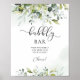 Letrero de bienvenida para despedida de soltera con eucalipto verde. Artículos a juego disponibles.