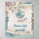 Letrero para mesa de comida para baby shower de mapa antiguo con globo azul y dorado sobre fondo de pergamino y mapa antiguos. Este lindo letrero para mesa de comida para baby shower de mapa antiguo se puede colocar en un marco de 8x10 pulgadas y poner en la mesa.
