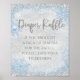 Letrero para sorteo de pañales con fondo de purpurina de copos de nieve azules y plateados. Simplemente agregue el texto de su elección en el estilo de fuente y color que prefiera. Estos hermosos letreros de juegos de baby shower de invierno mágico se ven geniales en un marco decorativo sentado en su mesa de evento.